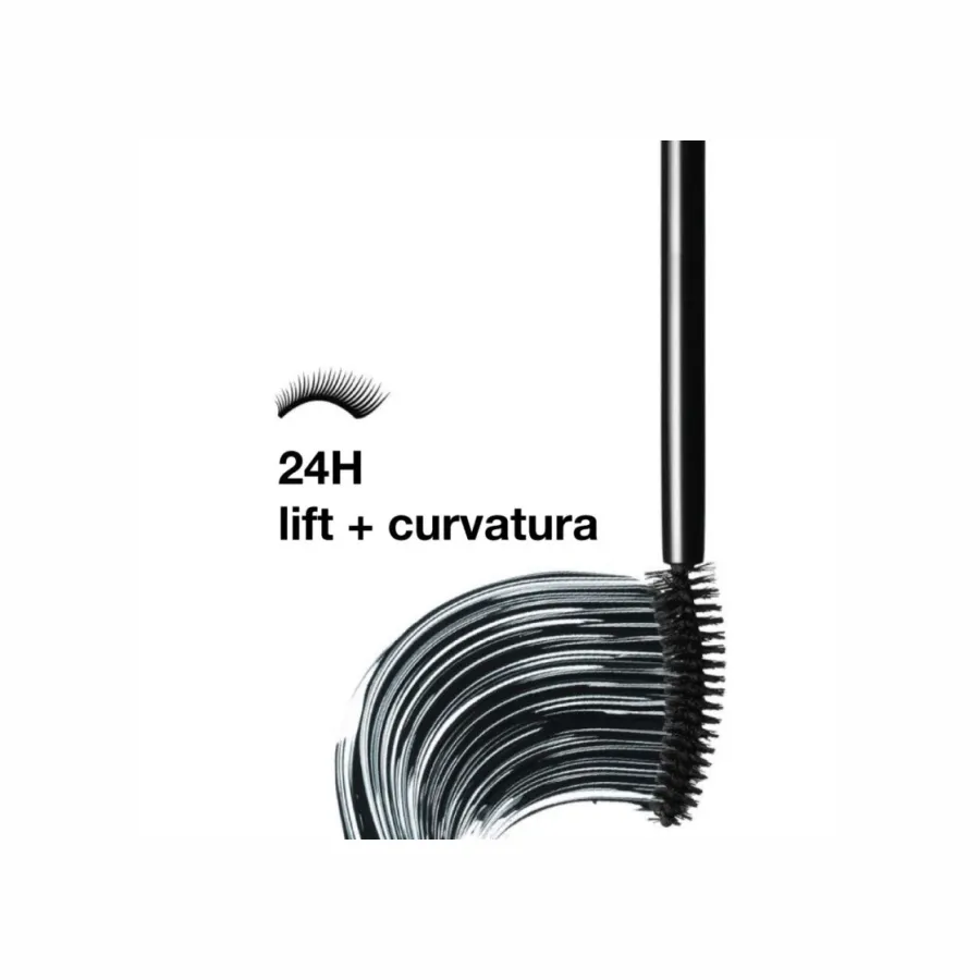 Uma máscara de pestanas que instantaneamente eleva e dá curvatura às pestanas em 50%, mantendo-as elevadas durante 24 horas.