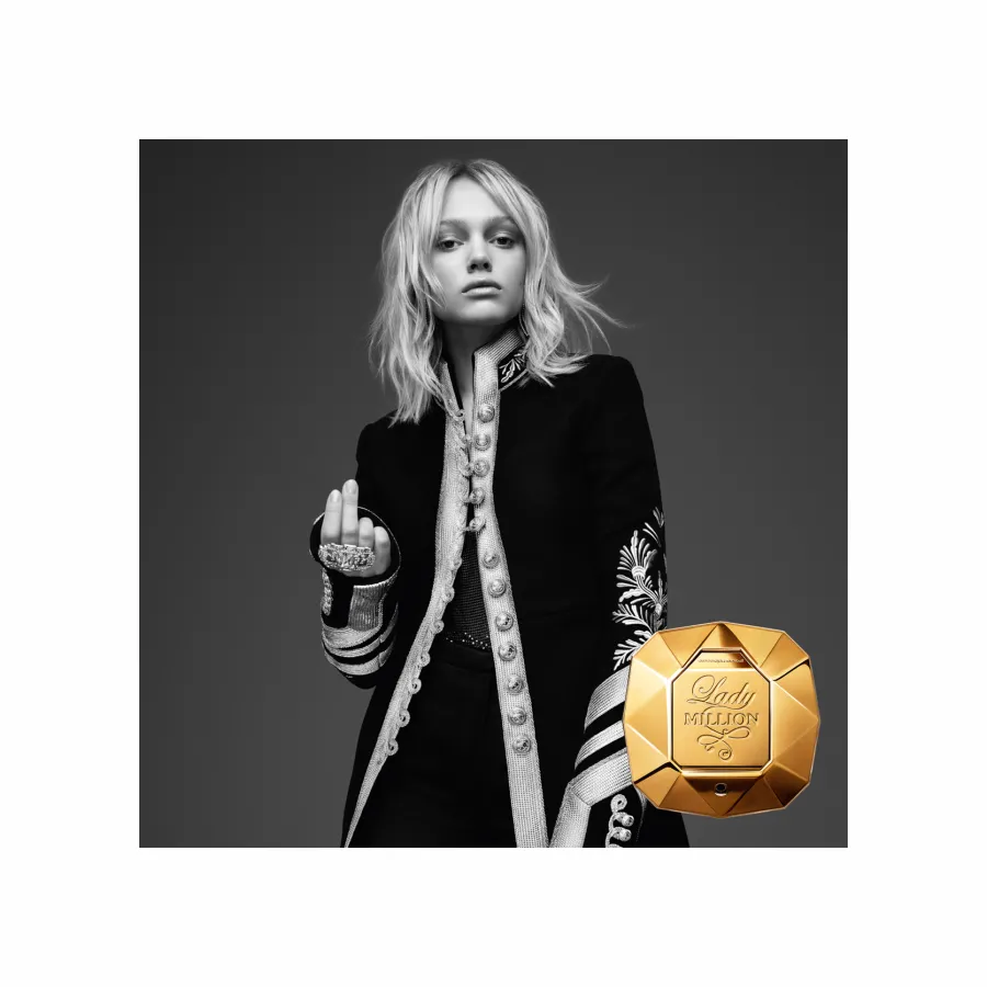 Brinque com o fogo e não obedeça. Exceto às suas fantasias. Deslumbre como nunca e crie a sua própria sorte! Lady Million cria uma sensação de vertigem. Um perfume para uma mulher atrevida na ribalta… Lady Million.