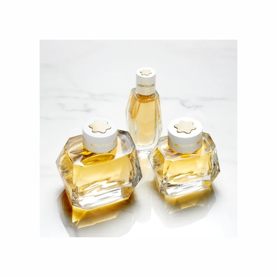 Através do vidro facetado do frasco, a fragrância dourada irradia com uma intensidade sublime. O emblema icónico na tampa destaca o nome de Montblanc com um requinte absoluto. A embalagem é adornada com um padrão dourado quente de Saffiano que evoca o artesanato dos artigos de couro de luxo Montblanc e reproduz a cor luminosa da fragrância.